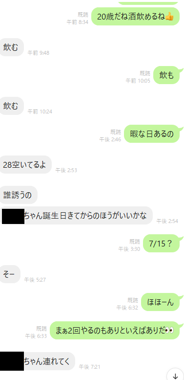 - 「ごめん、今日熱出たからいけなくなっちゃった」