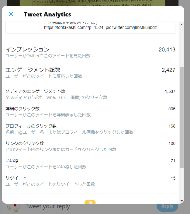 インプレッションを増やし、いいねやRTしてもらうこと。