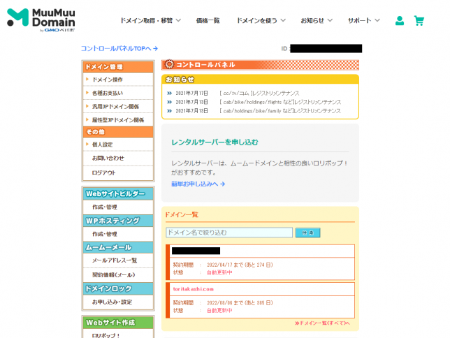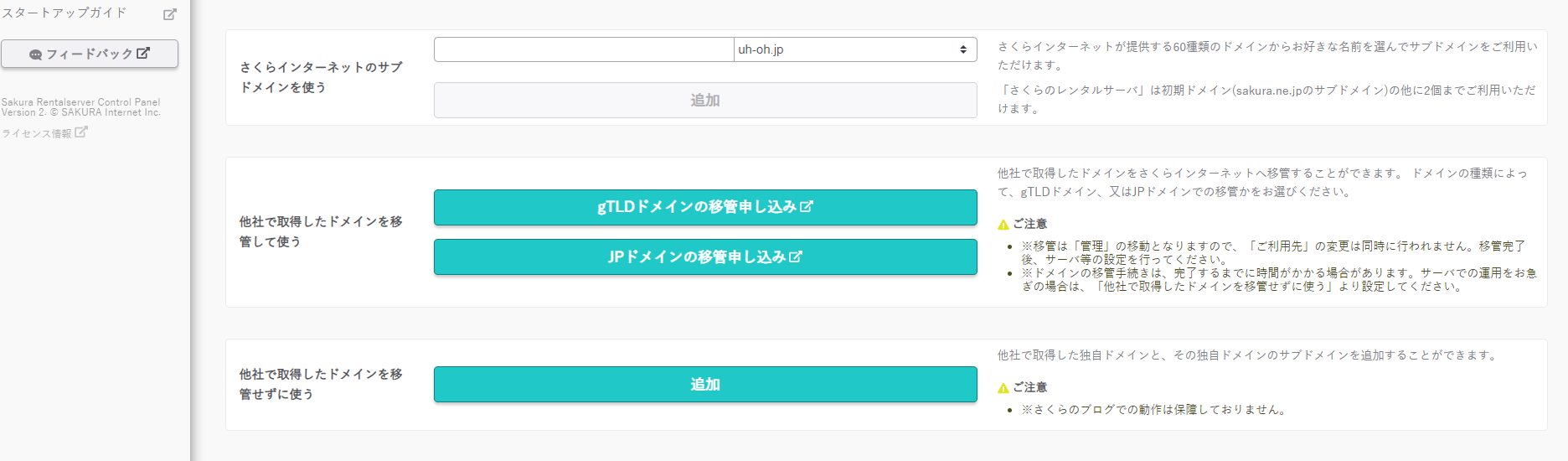 自分の環境はさくらのレンタルサーバ+ムームードメインです。