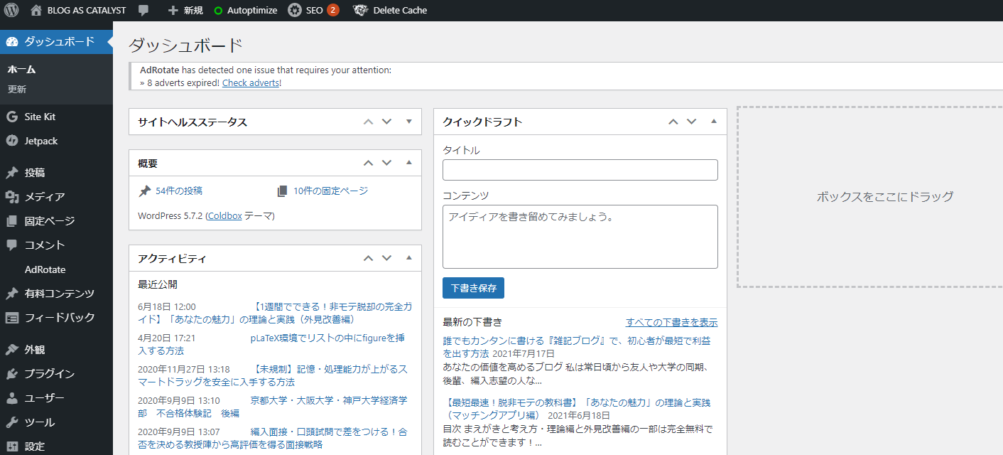 ログインできると下記のようなダッシュボード画面が表示されます。