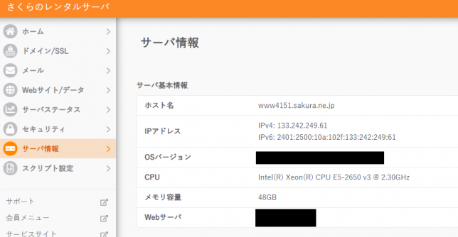 サーバーのIPV4アドレスは、コントロールパネルのサーバ情報から確認することができます。