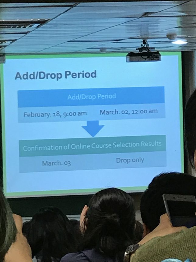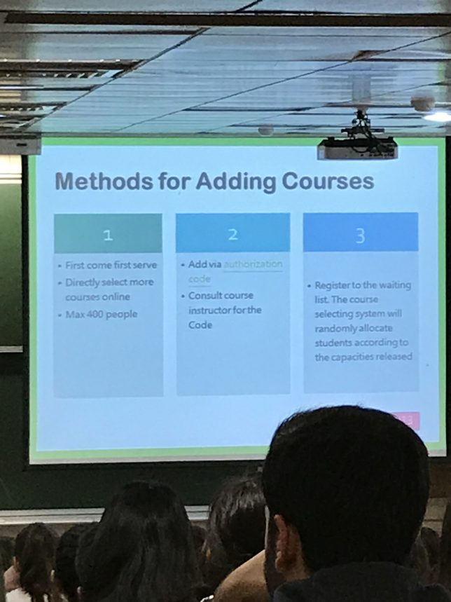 事前の抽選で落選してもそこから授業をDropする学生がいるので、取りたい授業には基本的に参加して登録することが望ましい。