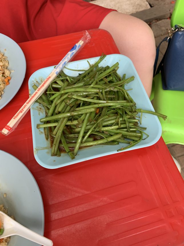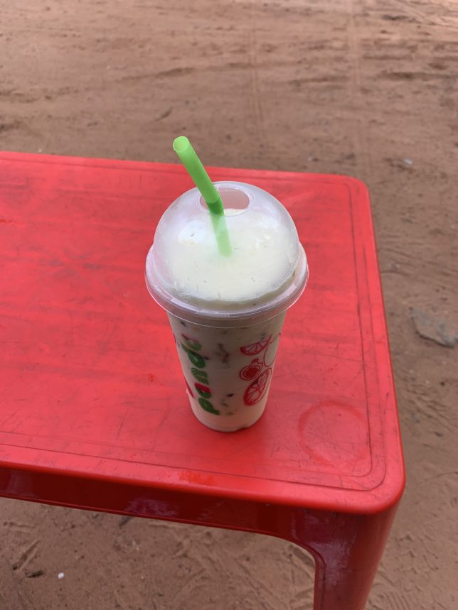 途中でアイスのお店があったので、彼女はそこでアボカドと何かを混ぜたアイスを1.5ドルで注文した。