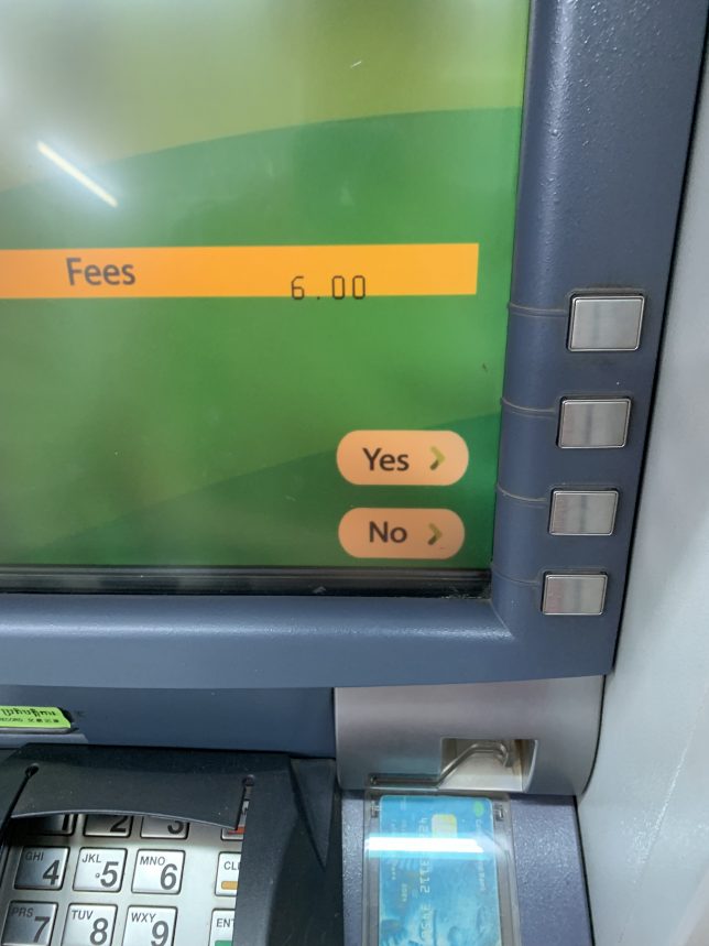 銀行名を撮り忘れたがATMの特徴で判別してほしい。