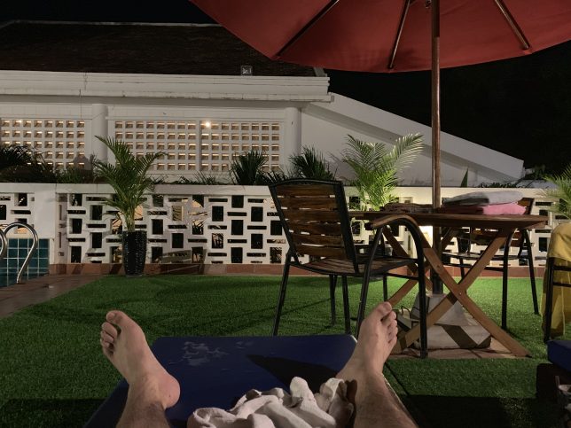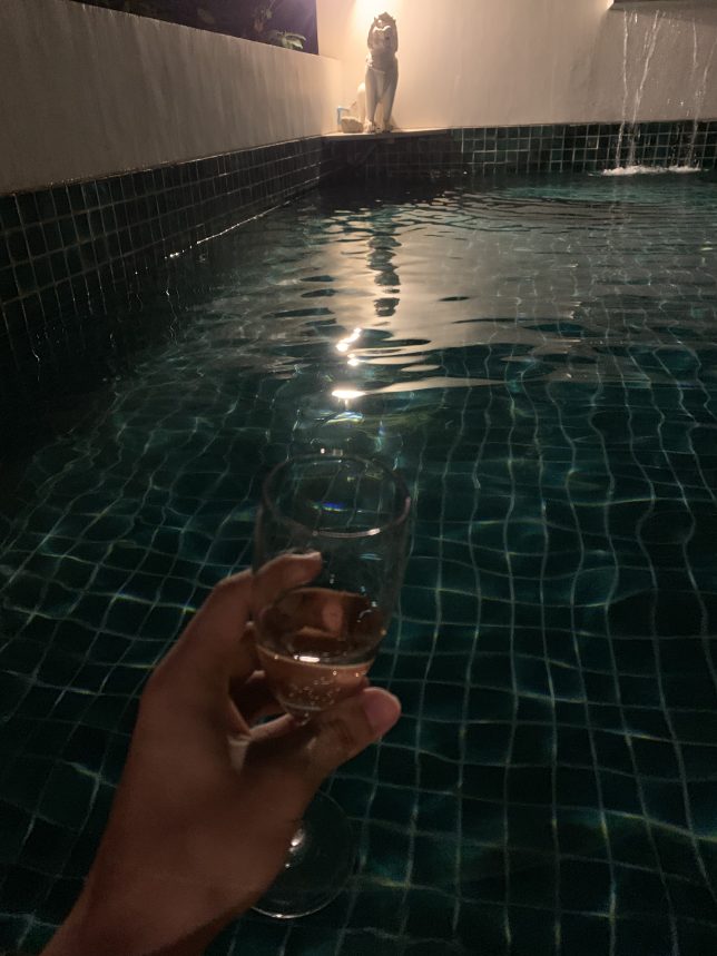 誰もいないプールで水を掛け合ったり、流れ込む水に肩を当ててマッサージと称したり、ひたすら泳いで飛び込んで酒を飲んでと存分にプールを満喫した。