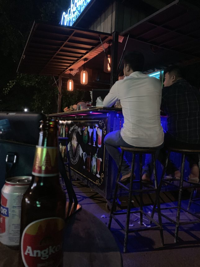 先ほどの屋台が並んでいる通りを歩いていると小さなバーを発見。