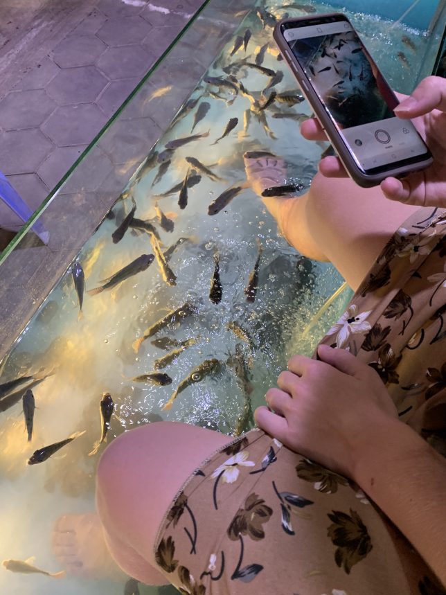 スマホを見ながらのんびりアイスを食べると、近くにあったドクターフィッシュセラピーをやりたいそうな。