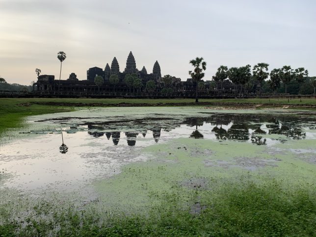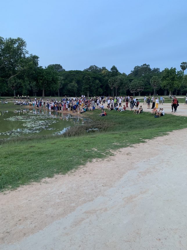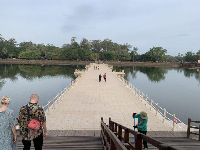 広場の中央には遊歩道があり、アンコールワットの正面には遊歩道を挟み込む形で大きな水溜りができていた。