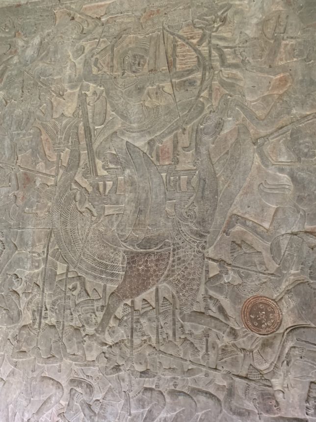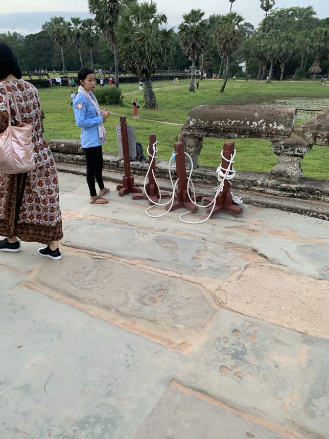 これを見た時は、アンコールワットの中に入れないのかと残念だったが、5時50分頃に撤去されて中に入ることができた。