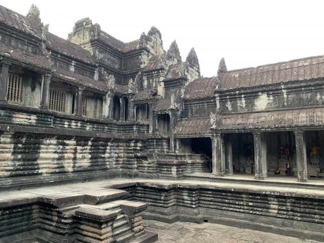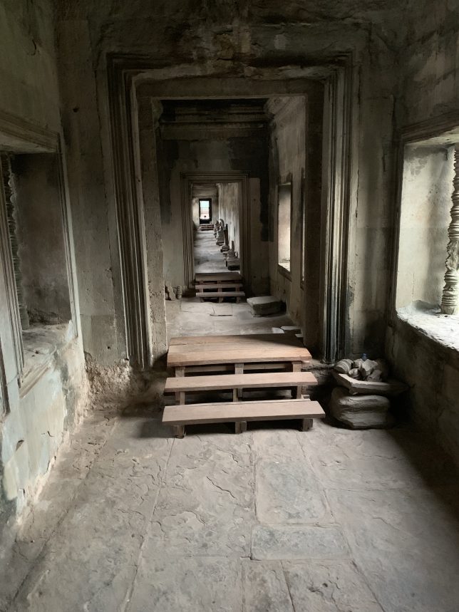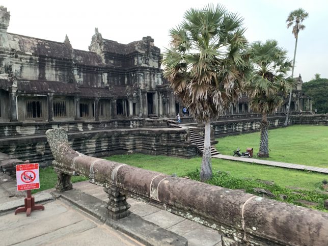 外観の写真をパシャパシャと撮り、その看板が撤去されたのに気づいたのでアンコールワット内部へと向かった。