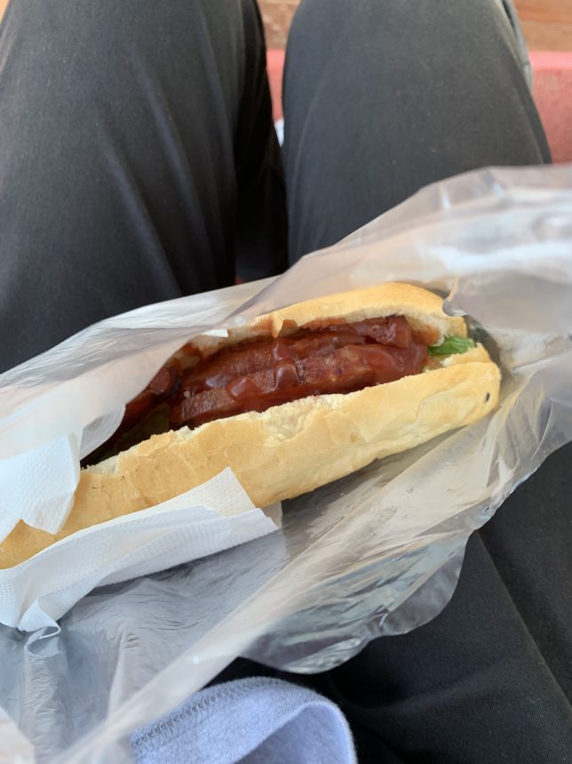そこからトゥクトゥクの客引きを避け、駐車場に行くとサンドイッチを売っている出店を発見。