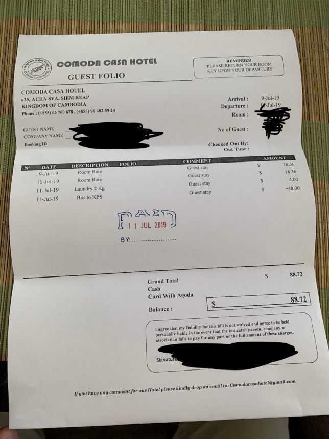 下の48ドルはシェムリアップからシアヌークビルまでのバス代だ。