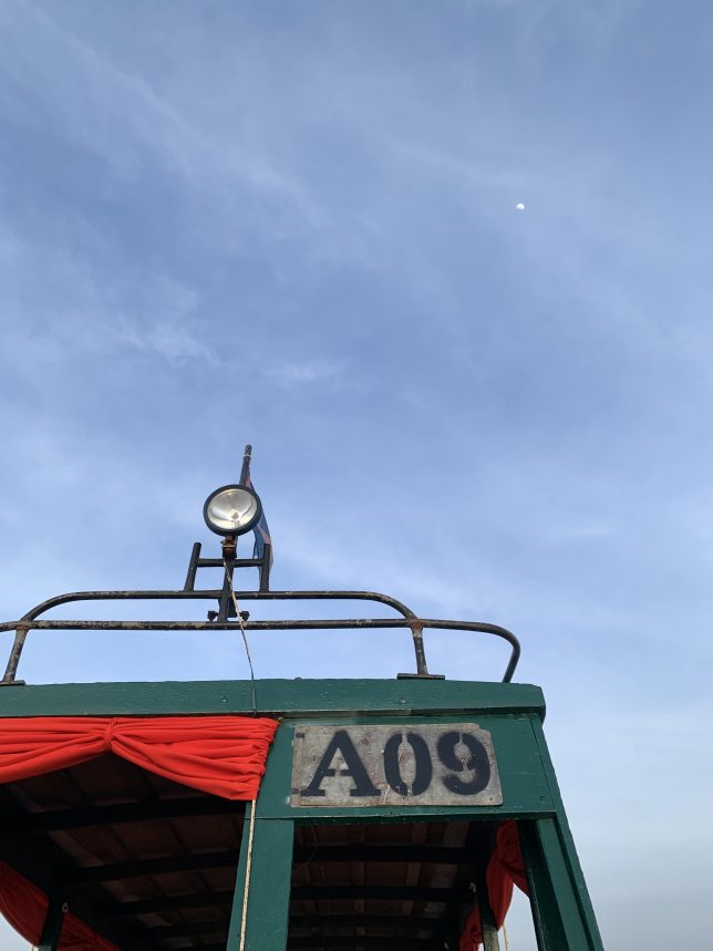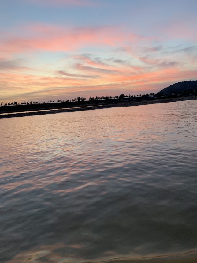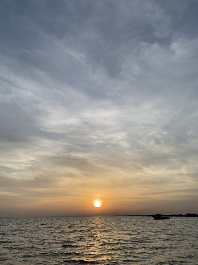 船が出港し、運転手に挨拶をして日の入りが見たいという希望を伝えるも、どうやら伝わったのか怪しい感じだった。