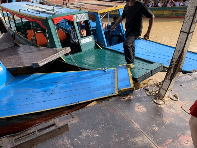 そして船の旅はここまでで、ここから住宅の密集した底が浅いため現地人の使っていたような小型ボートに20ドル払って乗り換えないといけないと言っていた。