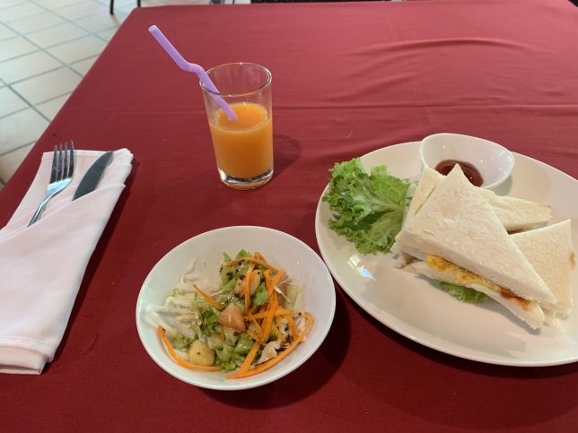サンドイッチ、トーストなど複数の選択肢があり、俺はサンドイッチ、ジュースはオレンジジュースを選択した。