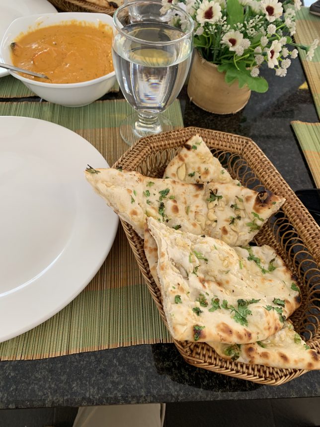 俺はガーリックナンを、彼女はバターナンを注文。プレーンのナンと、カレーはチキンカレーを2人で分けることにした。
