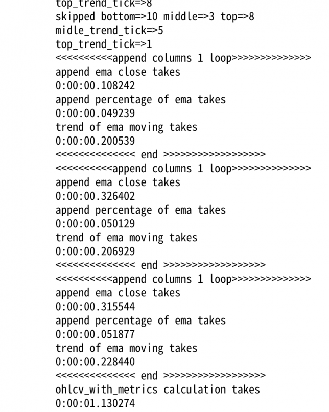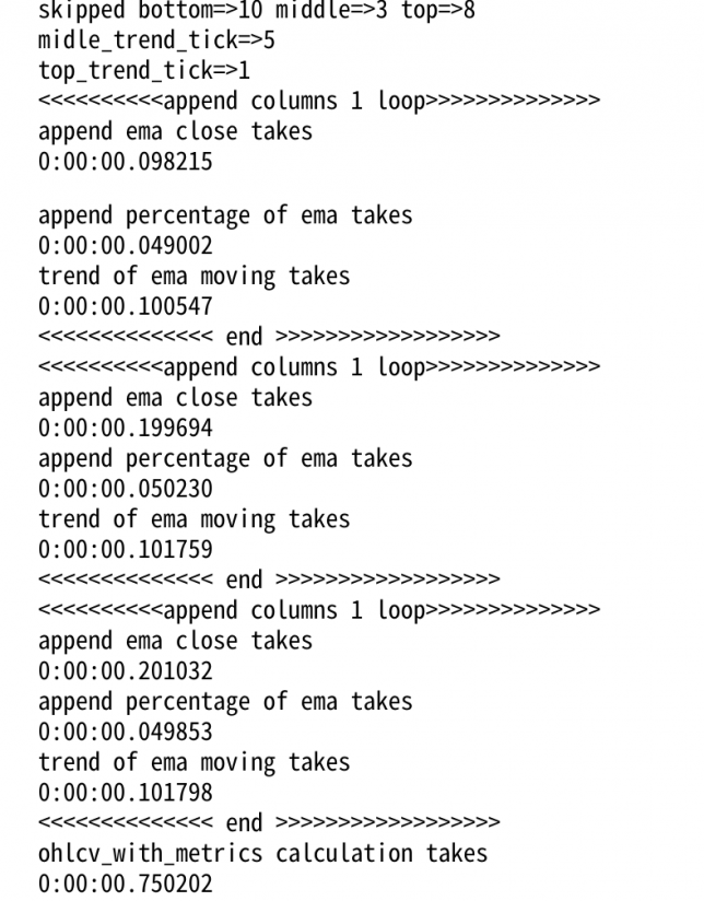 修正前の箇所で注目してほしいのはtrend of ema moving takesの真下の実行時間です。