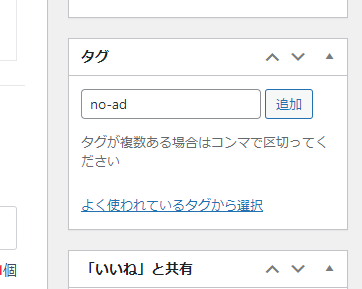 記事の編集ページやクイック編集機能から、タグに「no-ad」を追加します。