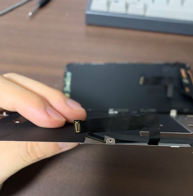 手順を逆再生して元通りに電源がつき、動作に問題がないことを確認したら、ディスプレイを本体にはめ込みましょう。