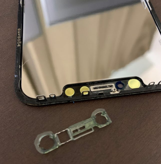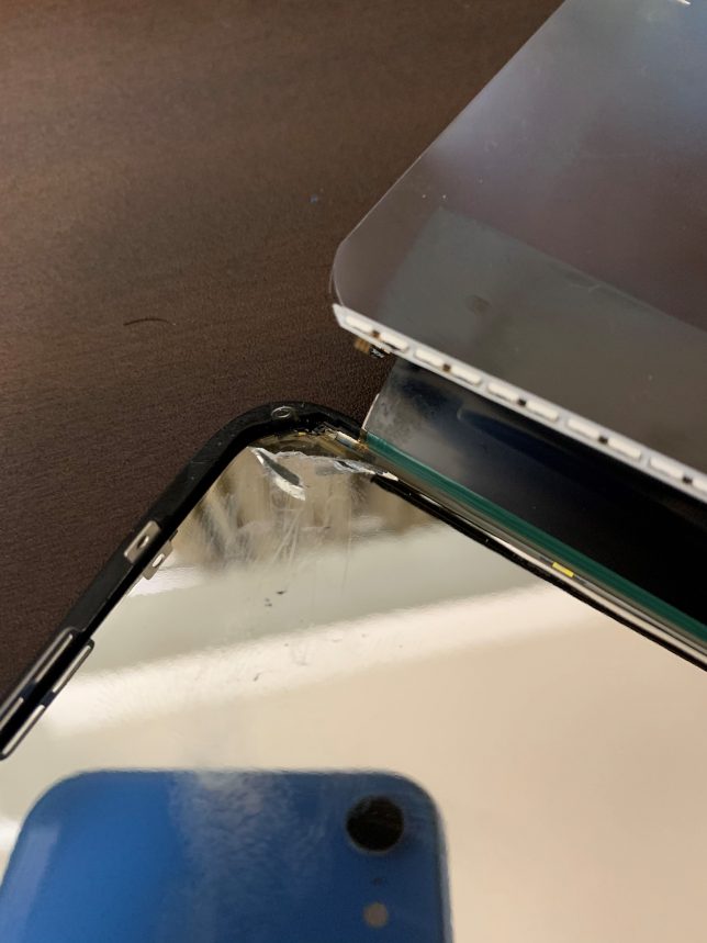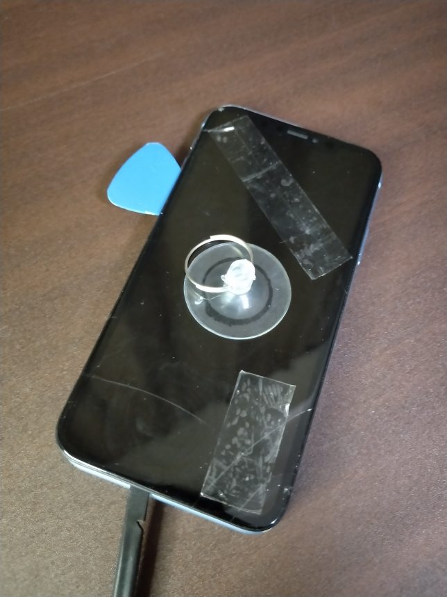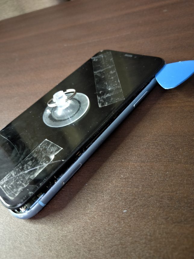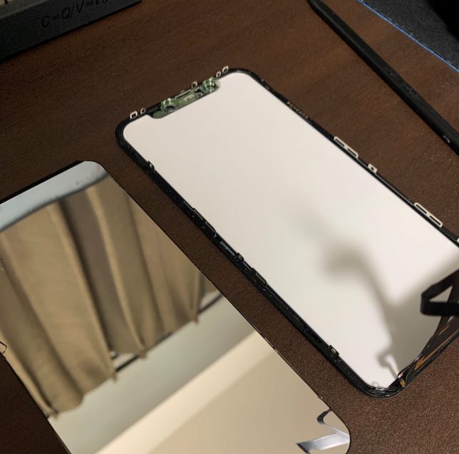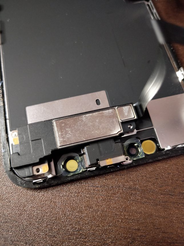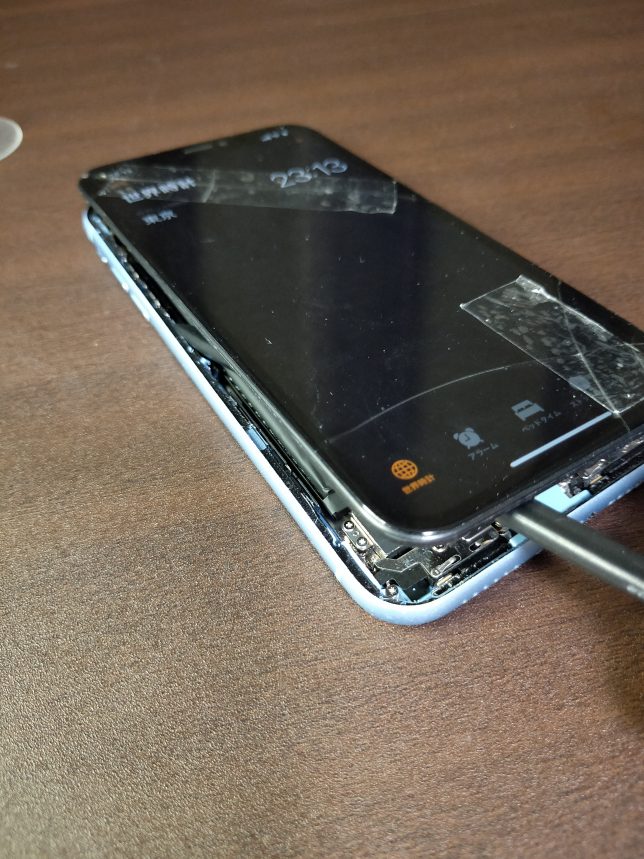 ここでは、iPhone XRの画面割れを修理していますが、内カメラに溜まったゴミを掃除することも可能です(これが本来の目的)