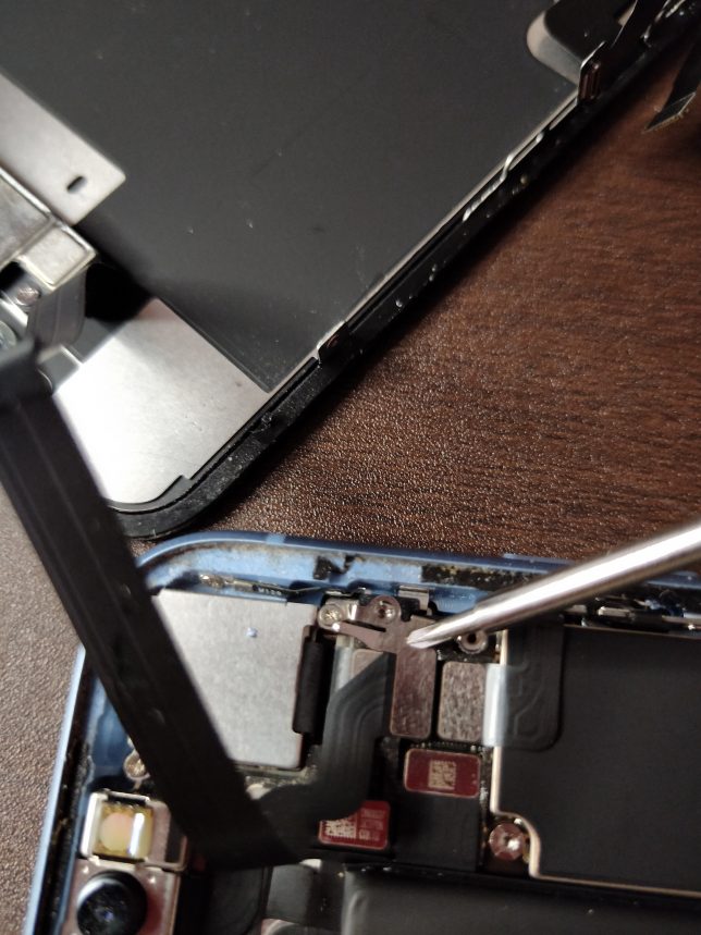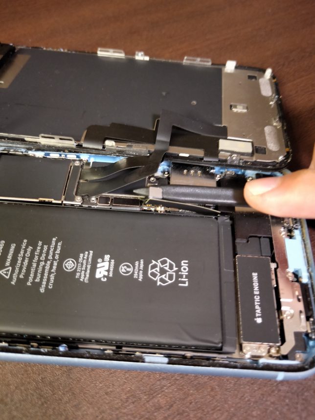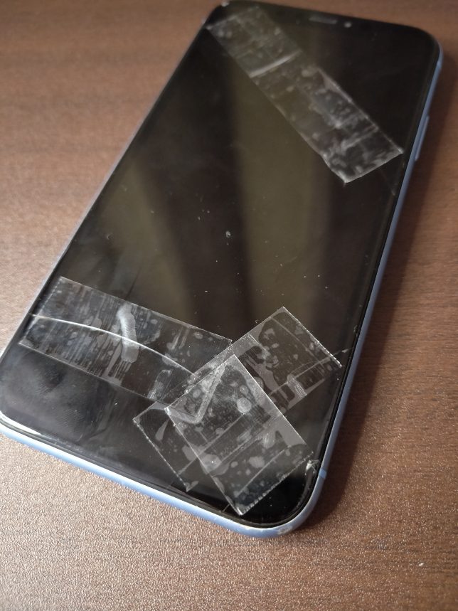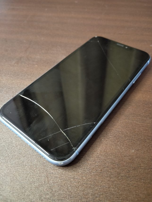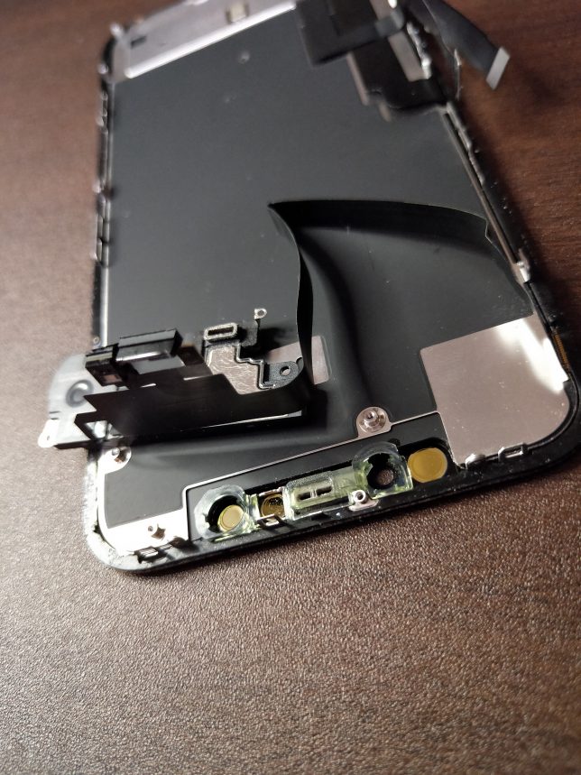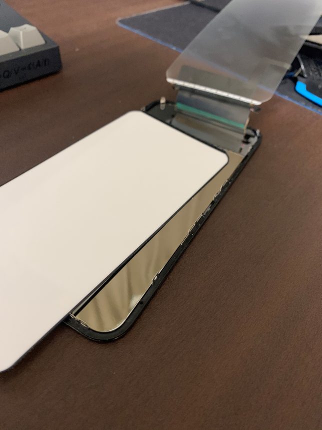 ここでは、iPhone XRの画面割れを修理していますが、内カメラに溜まったゴミを掃除することも可能です(これが本来の目的)