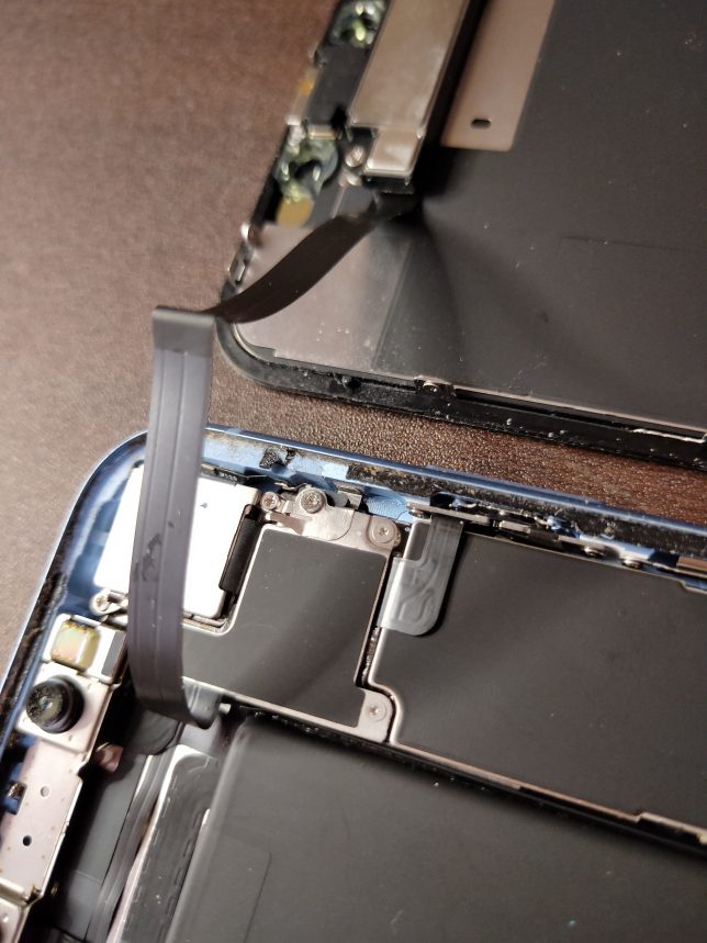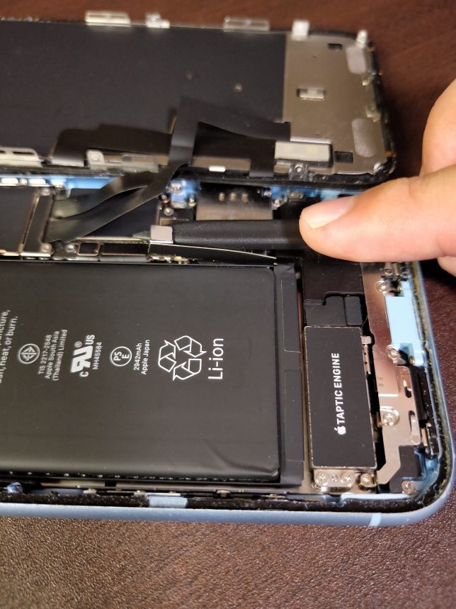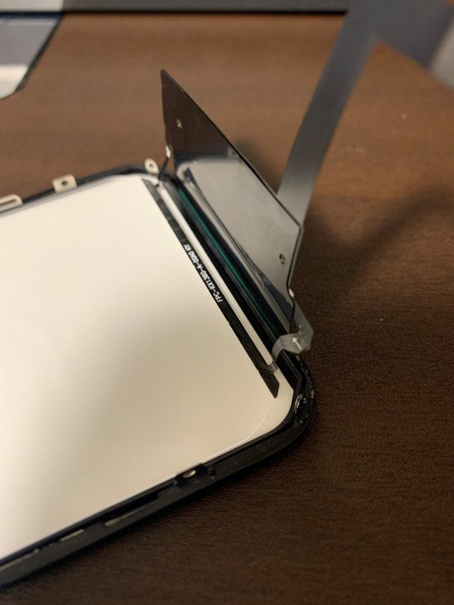 上部の隙間ができたら、iPhoneの液晶をパカっと開けることができます。