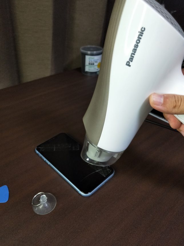 加熱し、下部寄りに吸盤を付け、洋服のタグを引きちぎらんばかりの力で液晶を引っ張ります。
