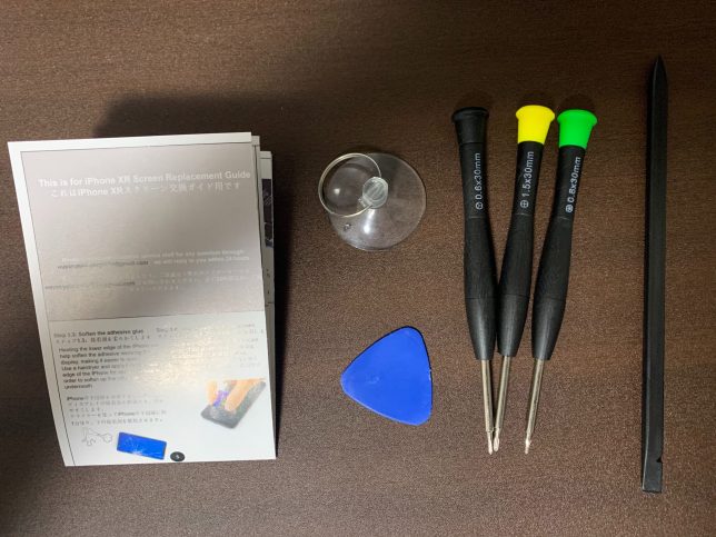 修理に必要十分な道具が画面修理キットの中に入っています。