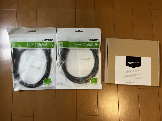 こちらは普通のHDMI-HDMIケーブル1つとHDMI-Type-Cのケーブル2つ。