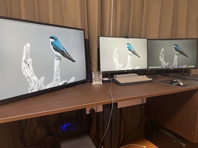 中央のモニターはMacでも映ってほしいが、映らなかったらMacをクラムシェルモードではなく左右のモニターをデュアルディスプレイとして使うこともできる