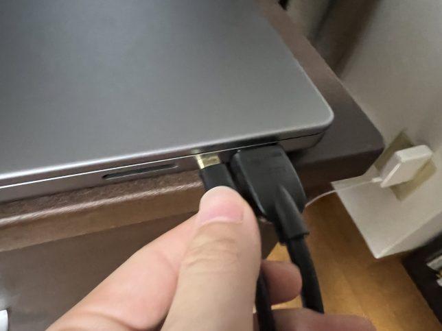 MacBook ProにはHDMIポートが1つあるのでこのようなケーブル構成になっています。