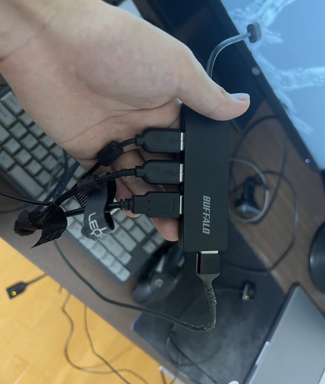 - 中段中央がスイッチで、そのやや下にUSBのハブが接続されています。