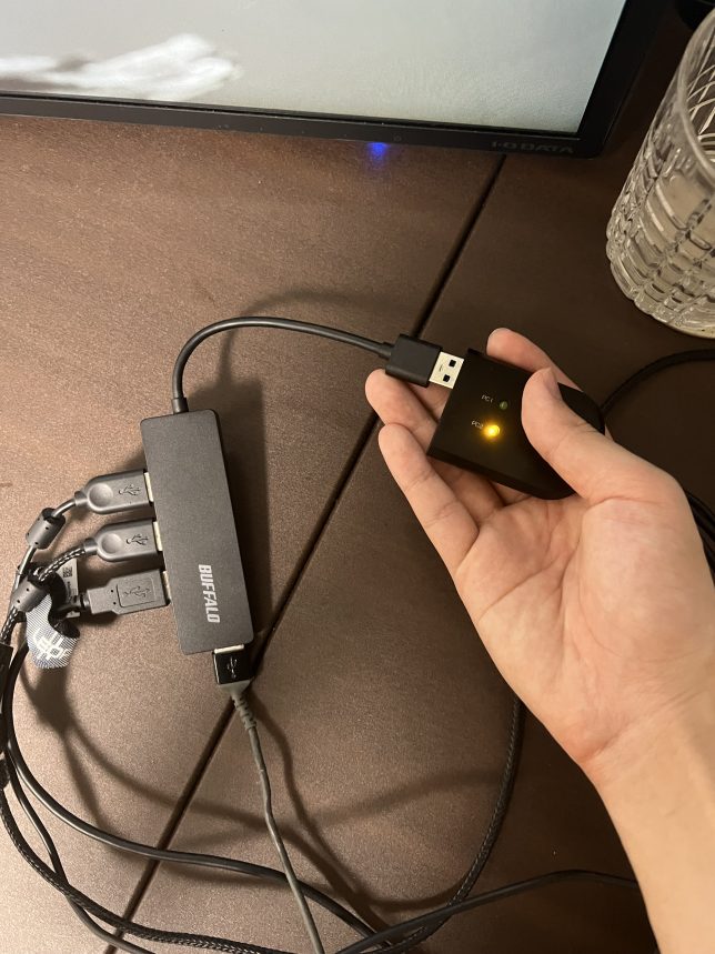 少しわかりにくいですが、手で持っているスイッチの明かりがオレンジから緑に変わっています。