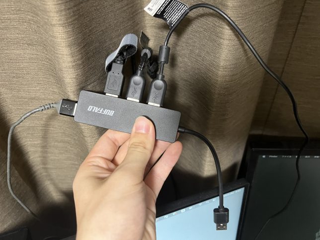 今回はキーボード、マウス、Webカメラ、スピーカーとデバイスが2つより多いので、ハブを生やします。