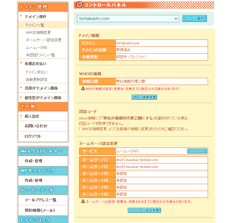 自分は独自ドメインをムームードメインを使っています(お名前.comのメールボムがうざかったので)。