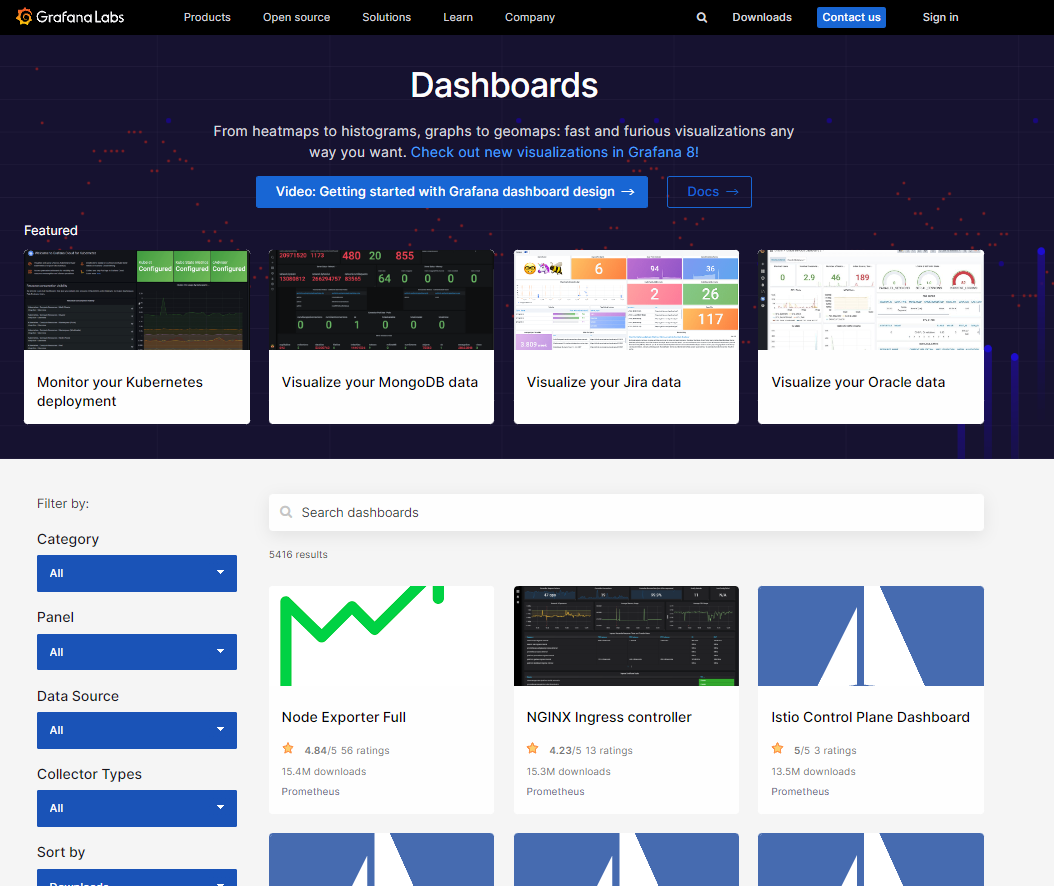 まずhttps://grafana.com/grafana/dashboardsにアクセスします。