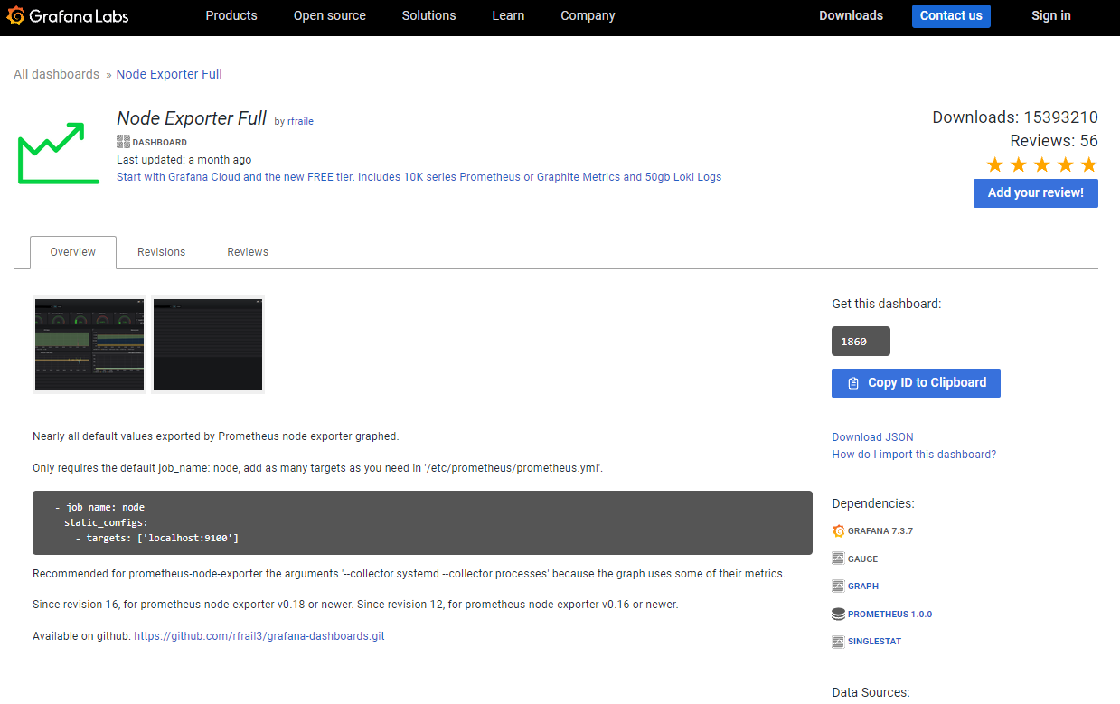 Node Expoter Fullは一番ダウンロードされているダッシュボードみたいですね。