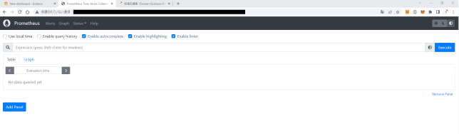 先ほどdocker-compose.ymlでnginx-proxyにprometheus関連のコンテナを追加したので、ホスト名prometheusでアクセスできます。