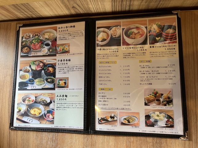 自分は「五品素麺(1830円)」彼女は「冷やしそうめん 天ぷら付き(1280円)」を注文した。