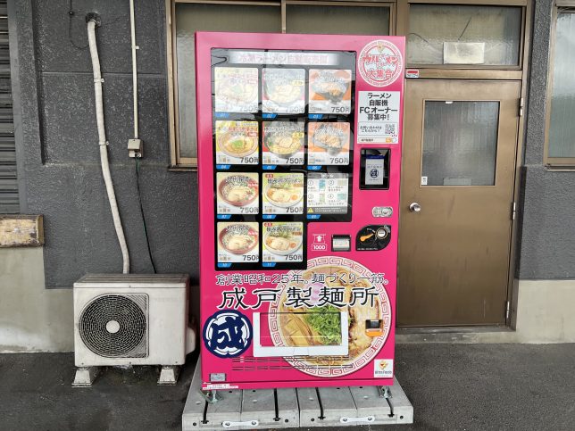 駐車場付近に謎の冷凍ラーメン自販機があった。