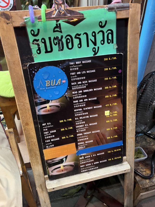 1時間の足つぼマッサージでお値段なんと200バーツ(770円程度)。