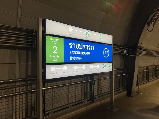 まず空港からエアポートレールリンクに乗って、電車でRatchaprarop駅へ。