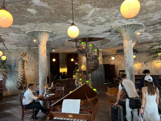 壁からキリンが生えているのと、中央の螺旋階段が印象的。
