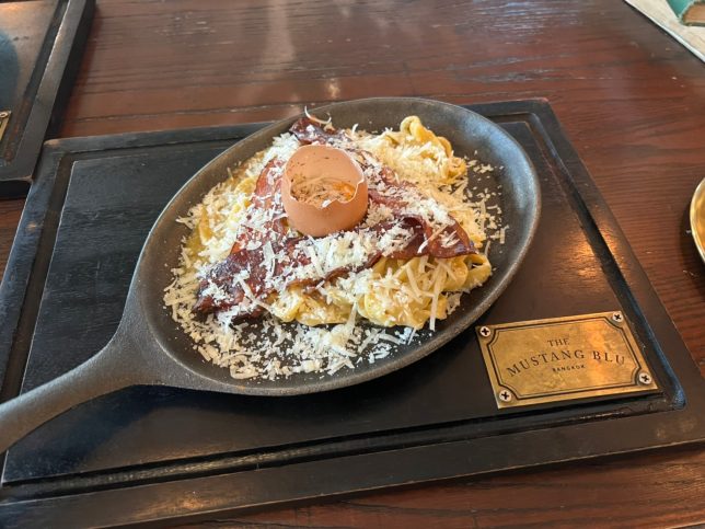 パスタは太くて平たい麺で、程よい塩気のソースとよく絡む。