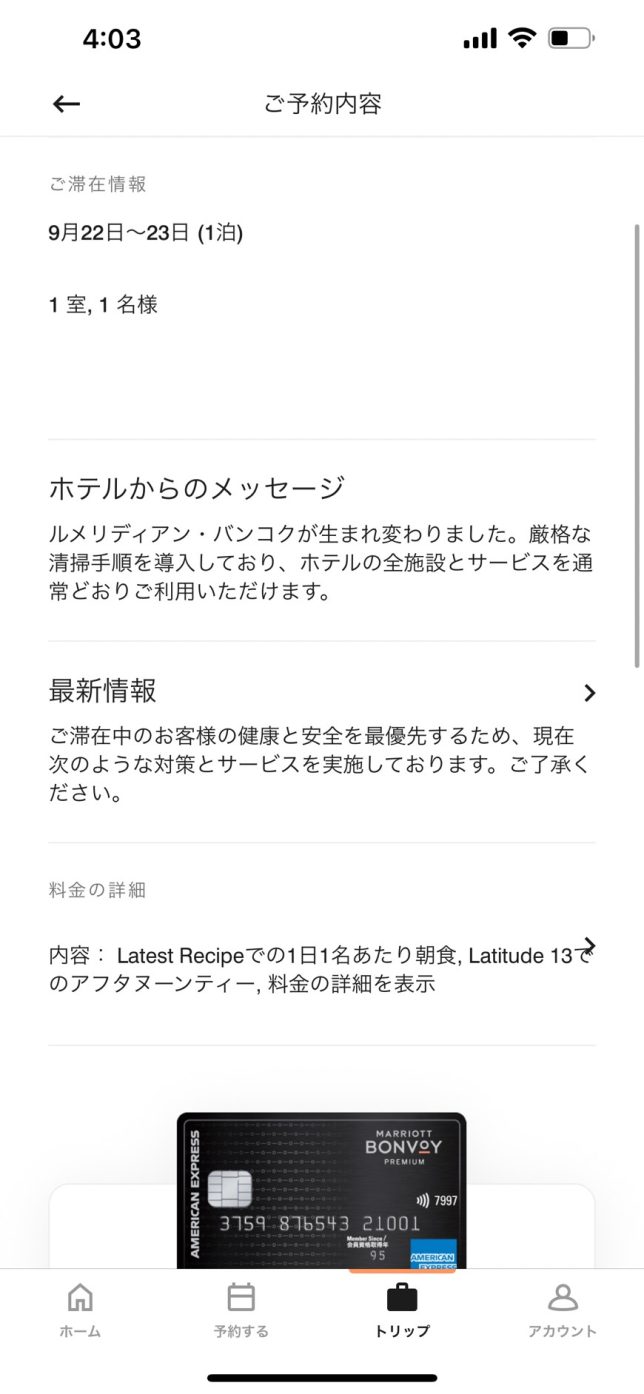 今月の初頭に「マリオットボンヴォイAMEXプレミアム」のカードを作っていて、なんとか旅行前にカード受け取り完了。
