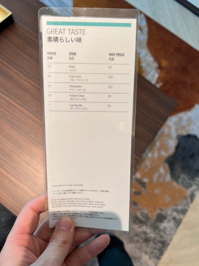 前に泊まっていたLebuaの飲み物代がいかに高かったかが際立つ。