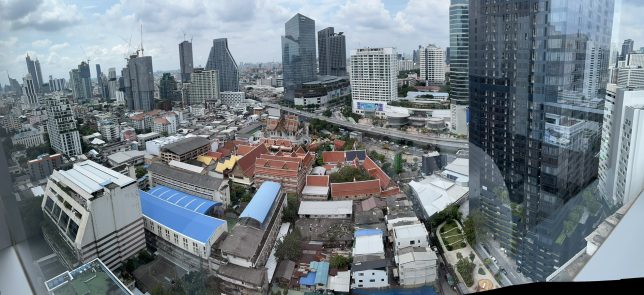 タイは貧富の差が激しく、真下のスラム街みたいなところもあれば、右のコンドミニアムも乱立している。