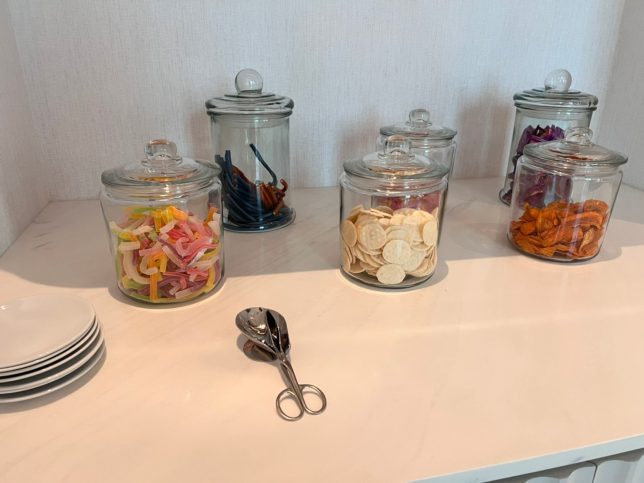Afternoon Refreshment時に提供されていたお菓子の一部と、酒のつまみに良さげなおつまみが陳列されていた。