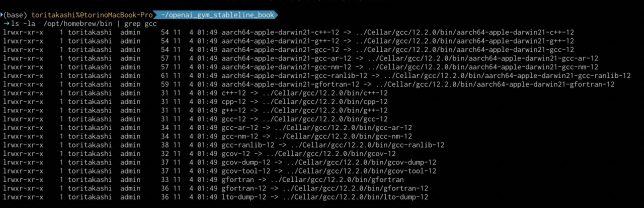 $ sudo ln -sf /opt/homebrew/bin/gcc-12 /usr/local/bin/gcc-9でgccへのパスを通します。