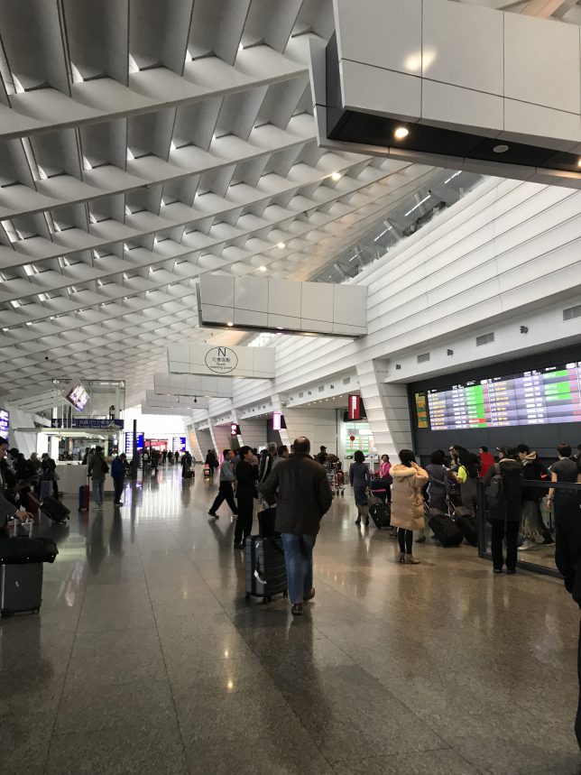 チェックインカウンターに向かい遅延・欠航情報を確認するも該当せず。